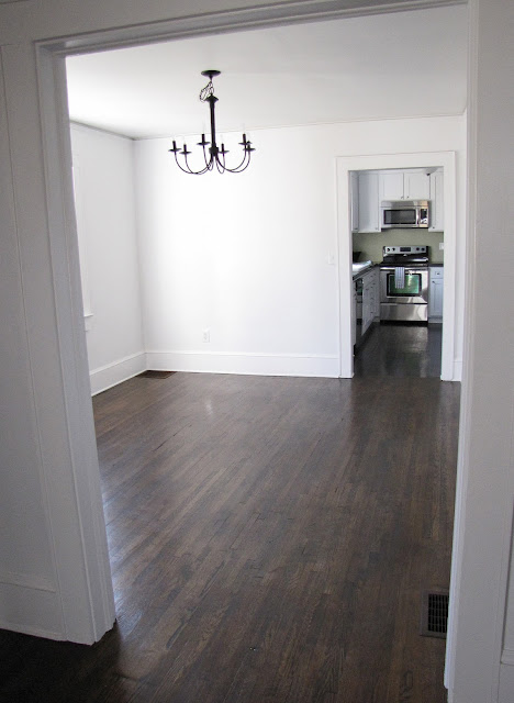 I love the dark floors, 10 foot ceilings and 9" baseboard moulding.